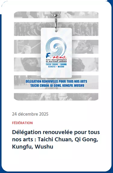 La FFAEMC, fédération délégataire, accueille et rassemble tous les arts énergétiques et martiaux chinois et disciplines associées d’origine chinoise avec mission de développement dans toutes leurs acceptions : loisir, santé, bien-être, anti-stress, performance, compétition… pour tous les publics et tous les territoires.