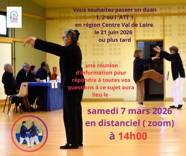 Une réunion d'information concernant les passages de duan et Att1 organisés en région Centre Val de Loire aura lieu en distanciel ( réunion zoom) le Samedi 7 Mars à 14h.